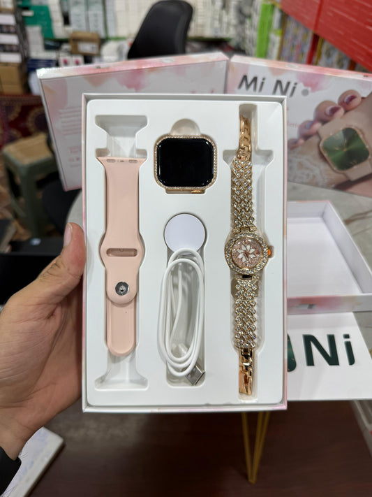Mi Ni ZW10 Diamond Smartwatch + Luxury Analog Watch for Women – Combo Gift Set, Fitness Tracker, Stylish & Elegant Design