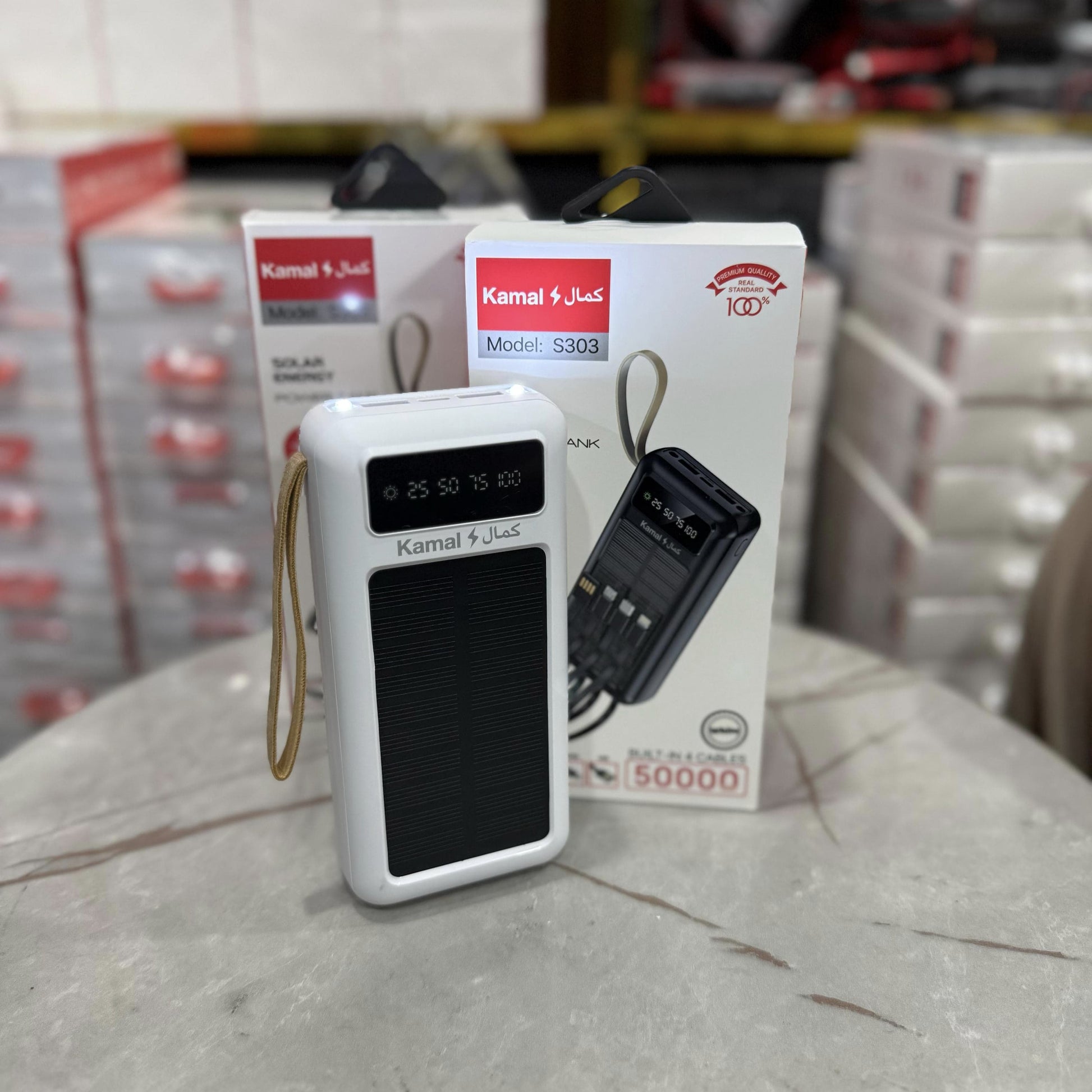 120W Fast Charging 50,000mAh Solar Power Bank with Built-In Cables – Dubai Lot Imported