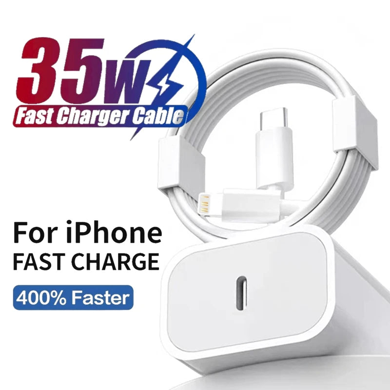 35W PD Fast Charger Cable for iPhone 16-8 & iPad Mini/Air with 2m Data Cable