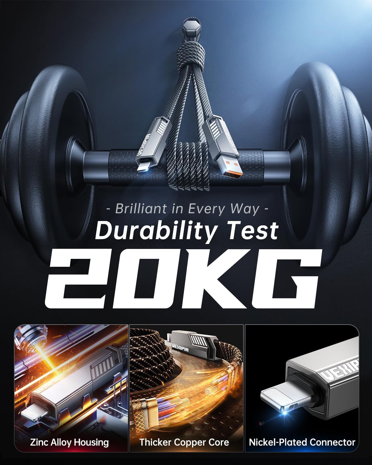 Premium Build Quality: Constructed with zinc alloy connectors for superior wear resistance and reinforced plastic for enhanced durability. The high-density nylon braided design ensures flexibility and long-lasting performance, making it resistant to everyday wear and tear.