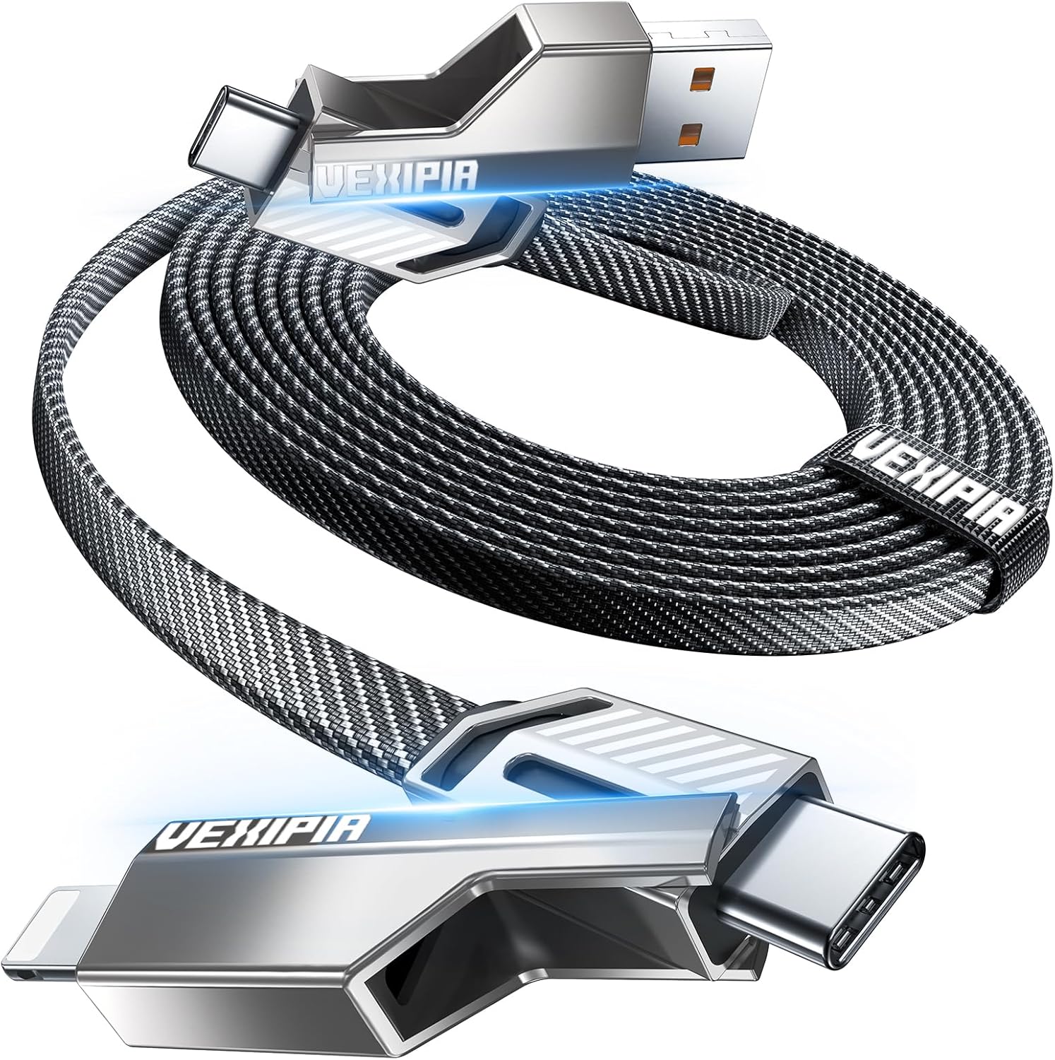 4-in-1 Versatile Design: This USB-C cable is your ultimate charging solution, featuring 1 USB-A port, 1 Lightning port, and 2 USB-C ports. Compatible with a wide range of devices, it’s perfect for travel and everyday use, combining convenience and efficiency in one durable cable.