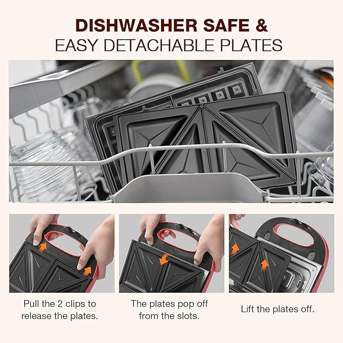 Sandwich Maker, Waffle Maker, multifun 3-in-1 Removable Non-Stick Plates,Food Grade Premium Stainless Steel, LED Indicator Lights,Cool Touch Handle, Suitable for Breakfast, Lunch, Snacks, 750W