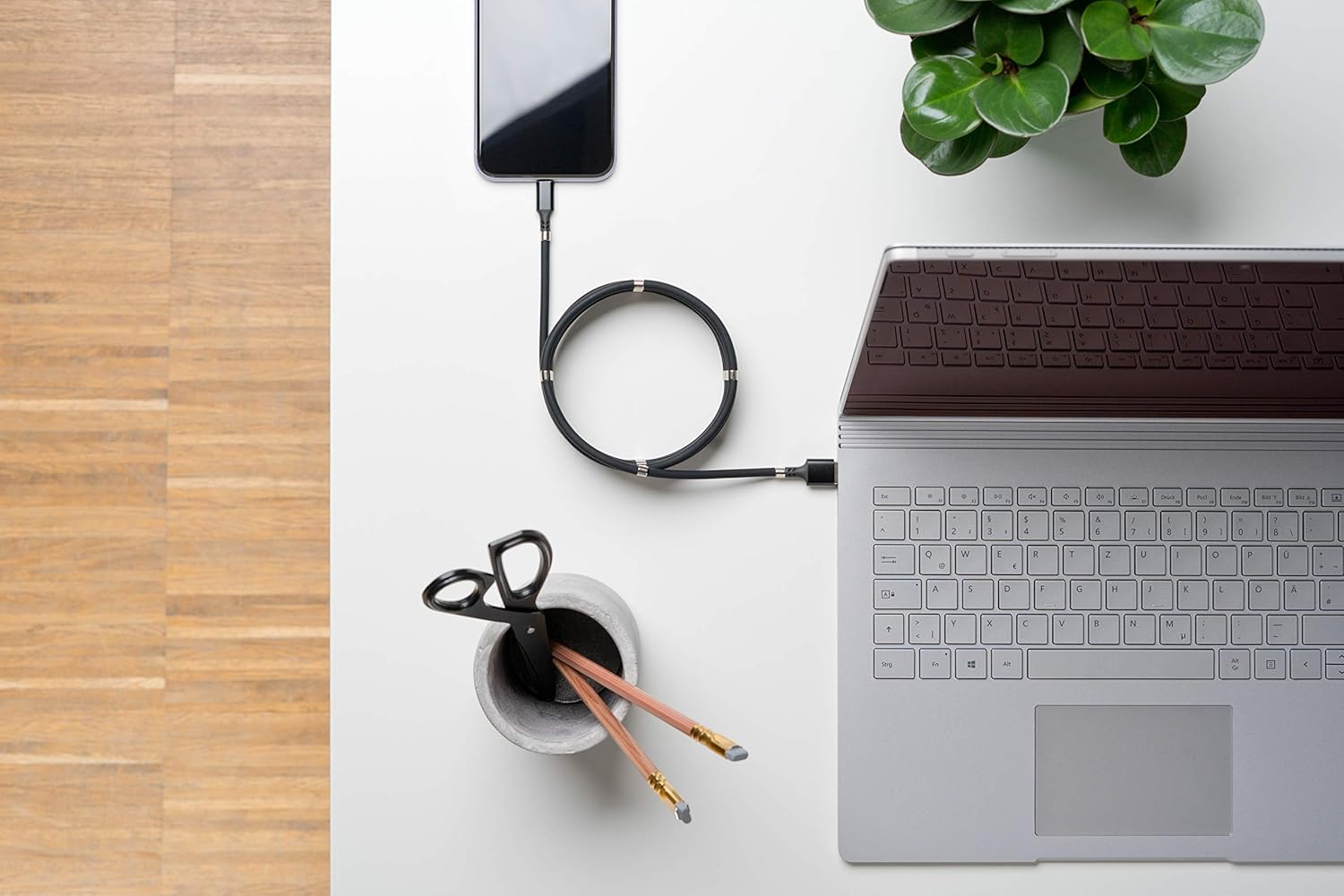 - Extremely practical – thanks to the high-quality N35 magnets, which are distributed along the cable, you can easily roll up and store the mobile phone charging cable. Tangled cables are a thing of the past